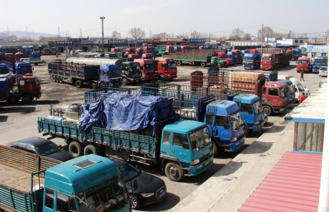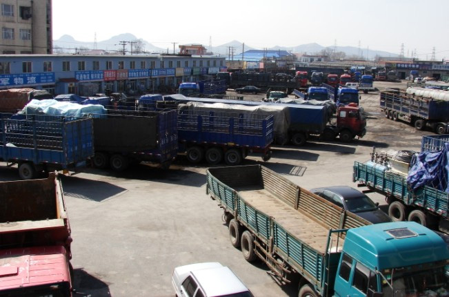 鞍山市钢都配货站后院,货车停车场,常年院内停放,来自全国各地来的货车,院内有配货站、修理厂、住宿、饭店。